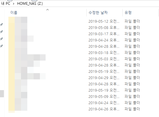 (개인 폴더에 대한 내용으로 모자이크 처리 양해 바랍니다)
